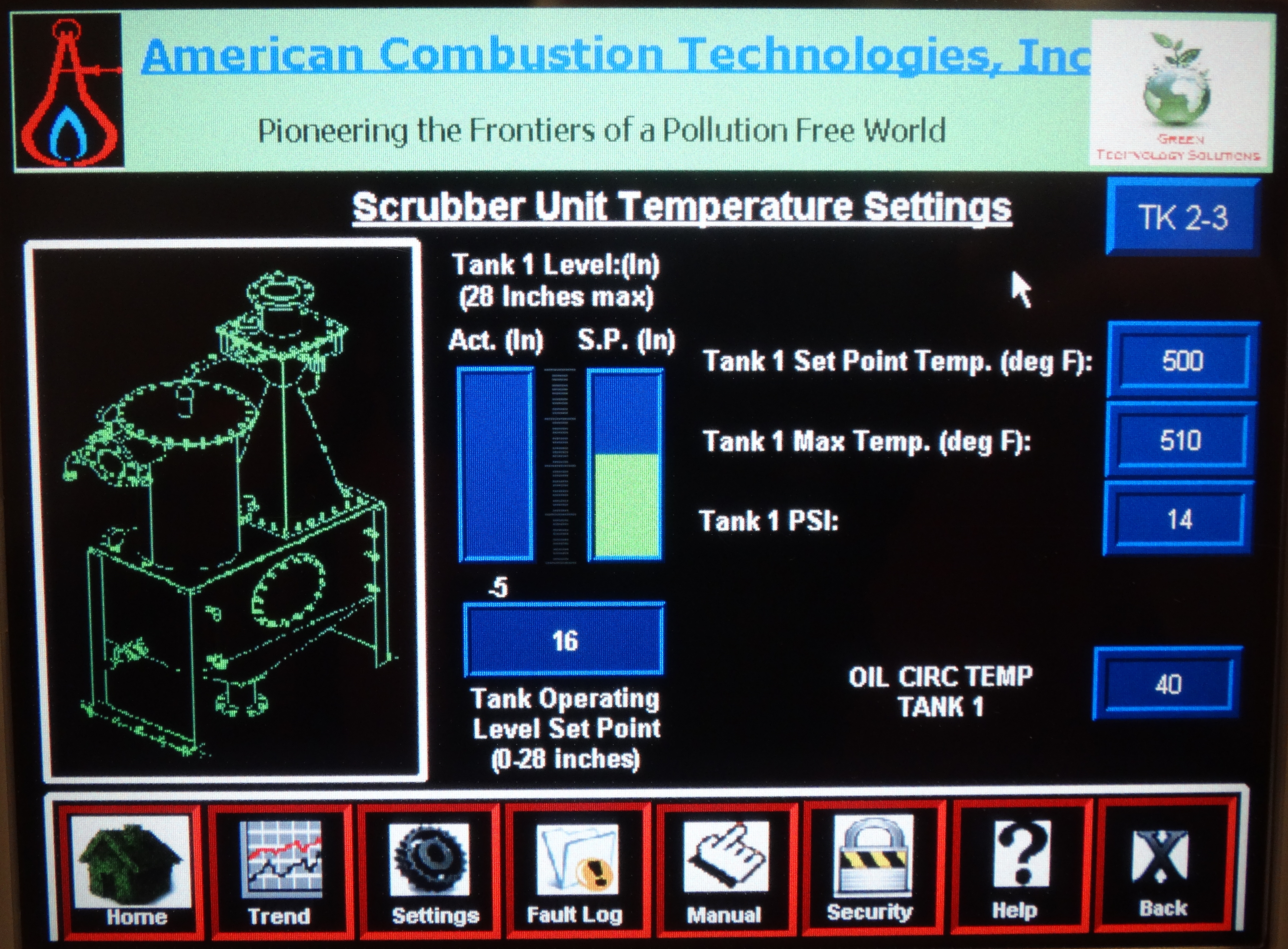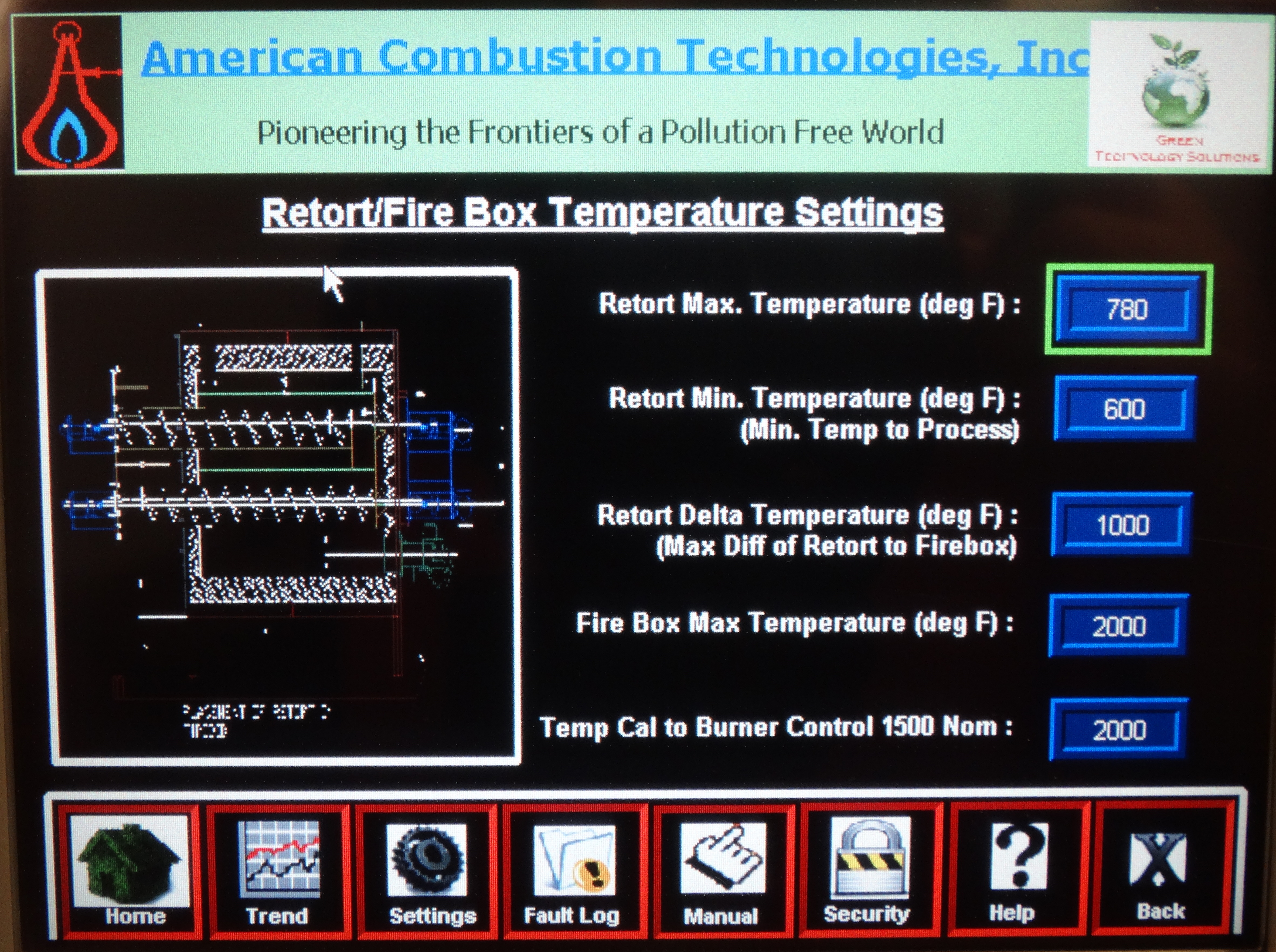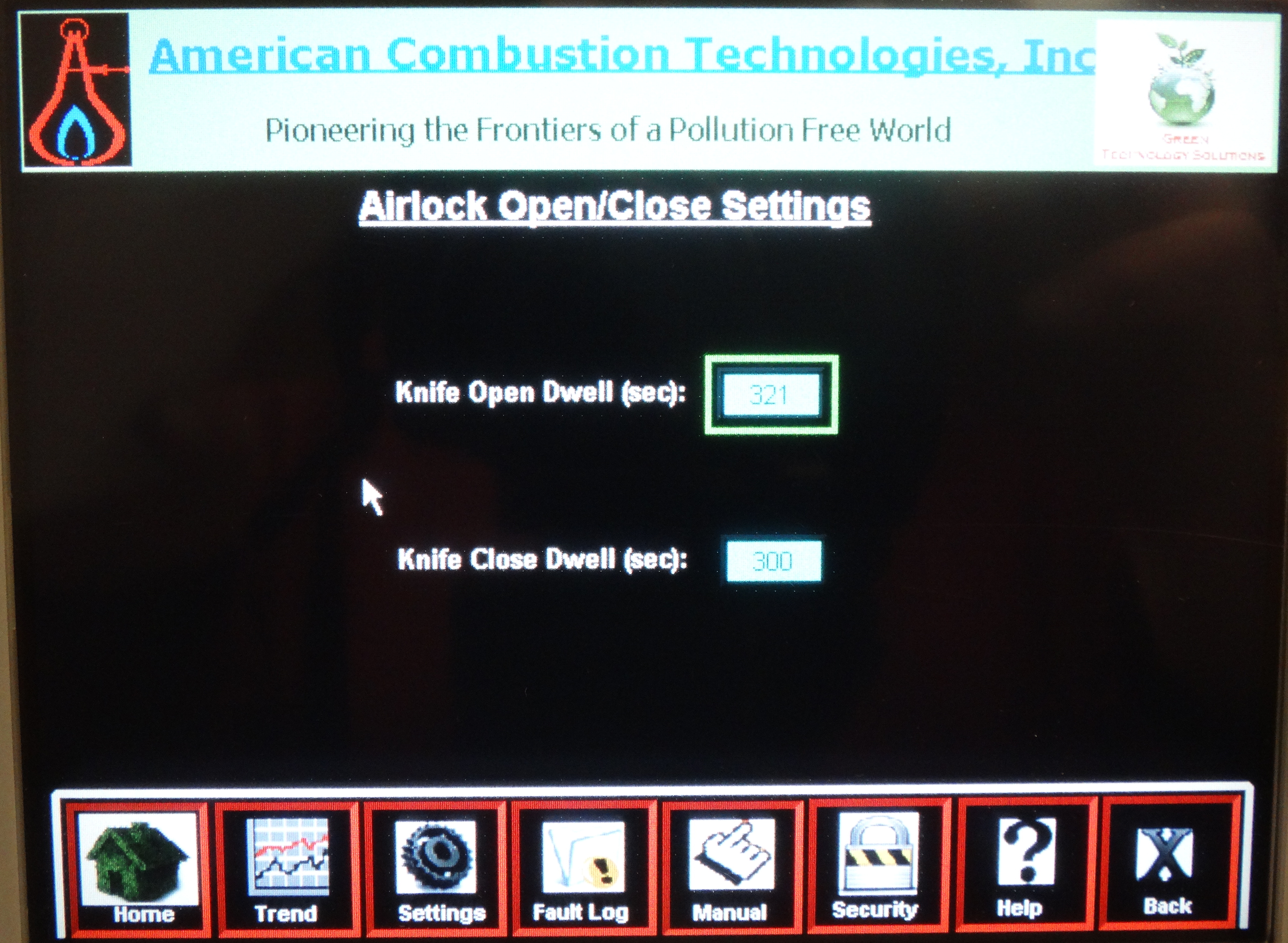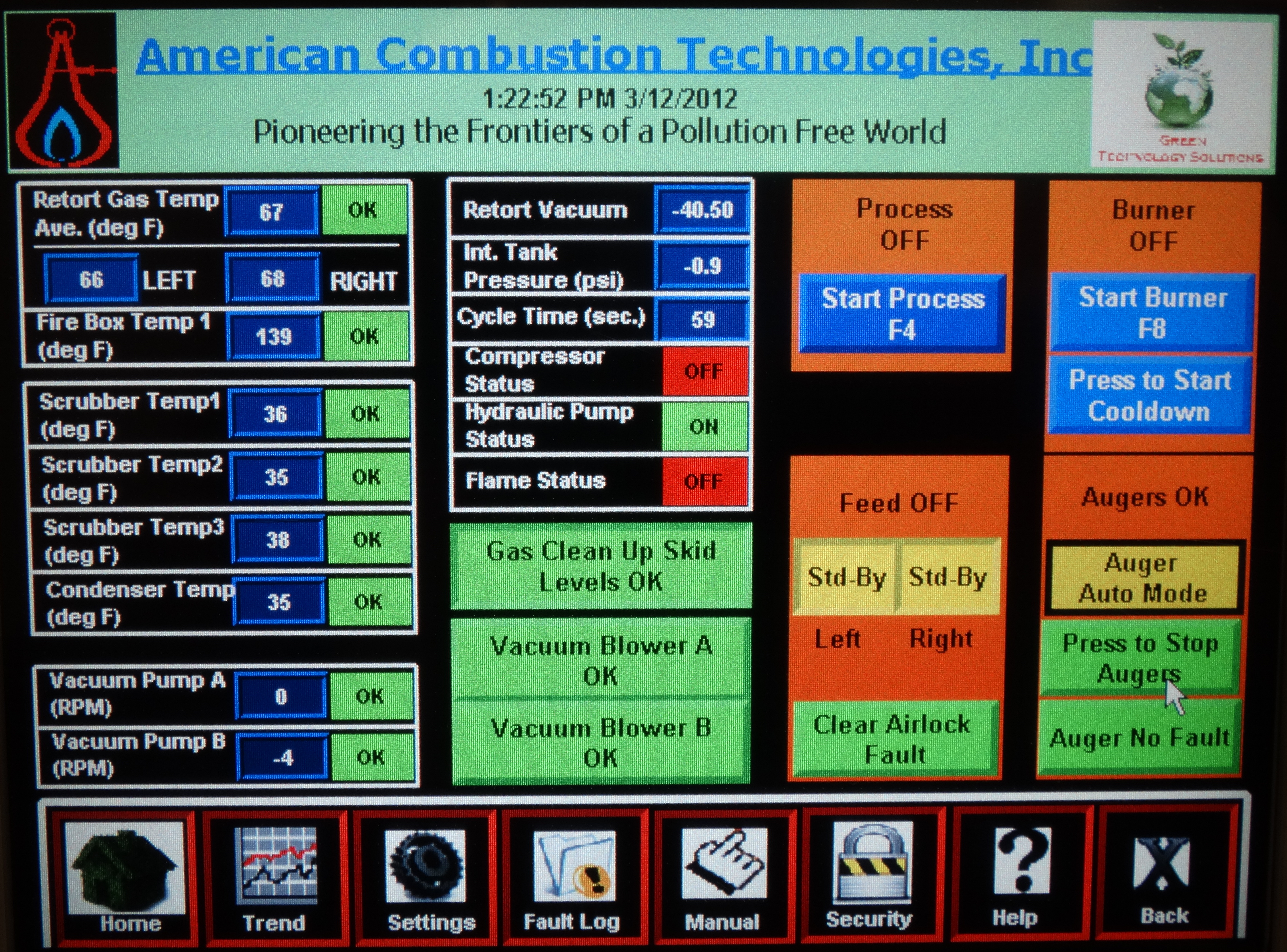 airlock left.JPG airlock open-close.JPG airock right.JPG auger manual.JPG auger settings.JPG auger settings-edit.jpg compressor setting.JPG condenser settings.JPG fault log.JPG home screen.JPG main screen.JPG mannual cleanup.JPG manual screen.JPG retort vac setting.JPG retort-firebox settings.JPG scrubber 2-3.JPG scrubber1.JPG sensor trims.JPG settings.JPG trend.JPG